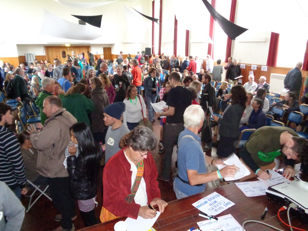 Il est important de créer des espaces où les gens peuvent se réunir et trouver d'autres personnes qui sont intéressées par les même idées. C'est l'une des principales activités qui aident les projets de transition à réussir. Le Forum Ouvert est une excellente technique pour permettre que cela se produise, il a été utilisé par de nombreux groupes pour générer des idées et des actions.