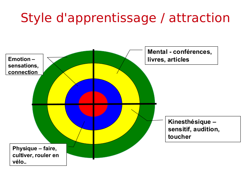 Pour mobiliser et inviter la diversité socioculturelle dans les projets liés à la transition, il est non seulement utile de penser au modèle 5D, mais aussi de se souvenir que les personnes n'ont pas toutes les mêmes styles d'apprentissage, ni les mêmes centres d'intérêts.Qui habite dans votre localité ? Quels sont les groupes que vous voudriez atteindre ?